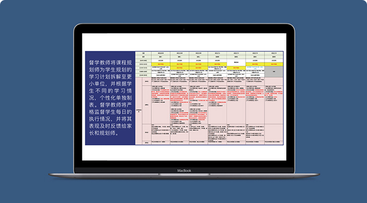 督學教師將課程規劃師為學生規劃的學習計劃拆解至更小單位,并根據學生不同的學習情況,個性化單獨制表。督學教師將嚴格監督學生每日的執行情況,并將其表現及時反饋給家長和規劃師。