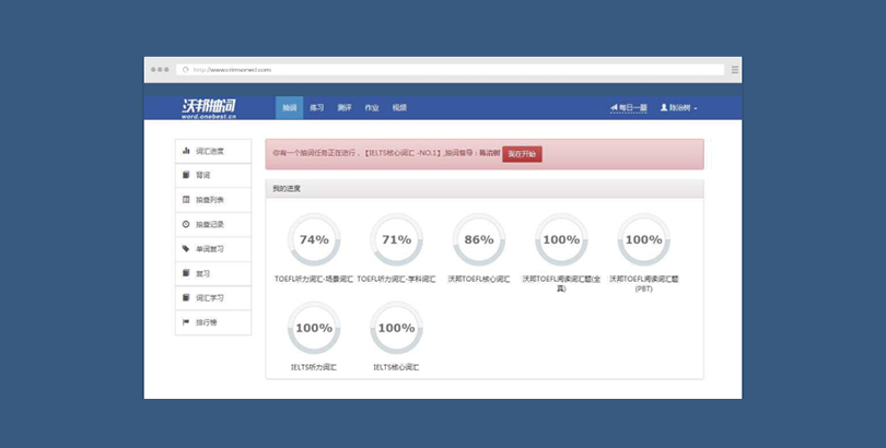 沃邦研發的線上學習系統,同時可供學生、教師、督學使用,可完成諸如班級設置、入學測試、日常作業布置、模擬測評、單詞抽查、日常練習、結果分析等多重任務。輔助學生進行課后練習和模考測驗,極大提高師生工作學習效率。